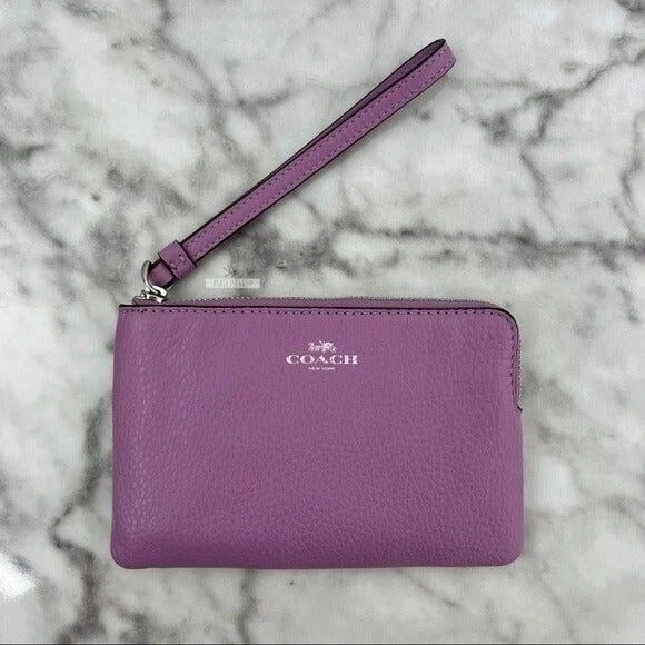 Purple coach wristlet wallet clearance, Coach Pebbled Leather Corner Zip Wristlet Wallet In Violet Orchid | eBay clearance