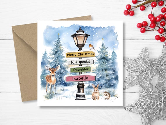 Unique custom christmas cards clearance, Personalised Daughter Christmas Card Lamppost Sign Winter - Etsy clearance