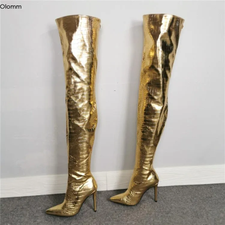 Gold knee high heels clearance
