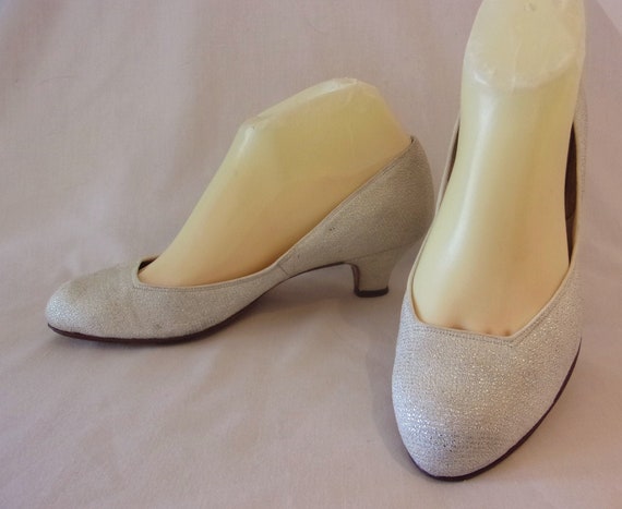 50s wedding shoes clearance, Fantastic 1950s White Lurex Cocktail clearance