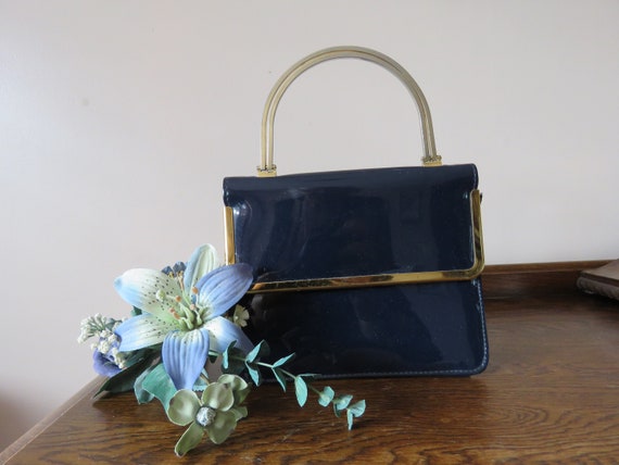 - Navy patent leather purse sale