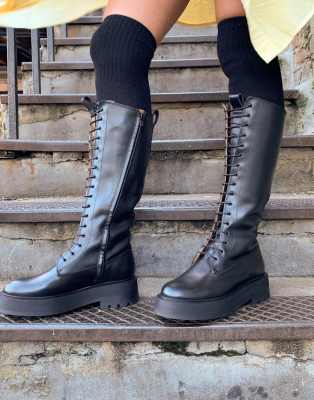 - Cheap & other stories leather tall chunky flat boots in black