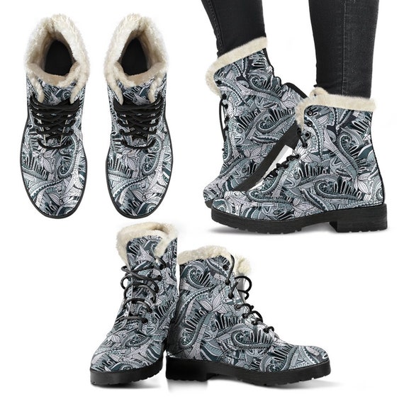 Funky winter boots clearance, Funky Patterns in Blacks Winter Boots Handcrafted Women Boots, Vegan Leather Boots, Animal Friendly Boots, Women clearance