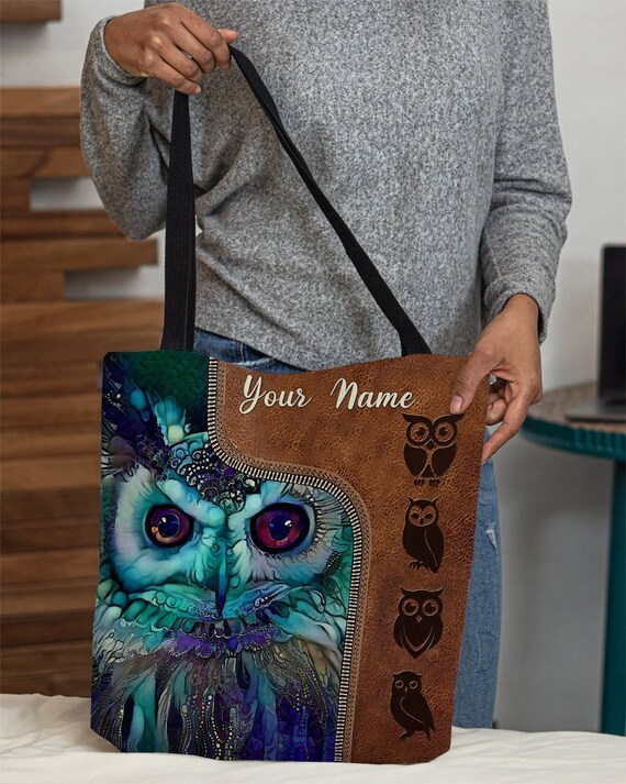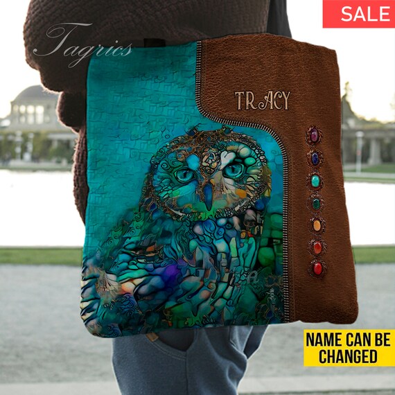Owl shoulder bag clearance, Personalized Owl Tote Bag, Owl Lover Handbag, Owl Shoulder Bag, Owl Lovers Gift Tote, Colorful Owl Eye Tote Bag, Gift for Friends Phg37 clearance