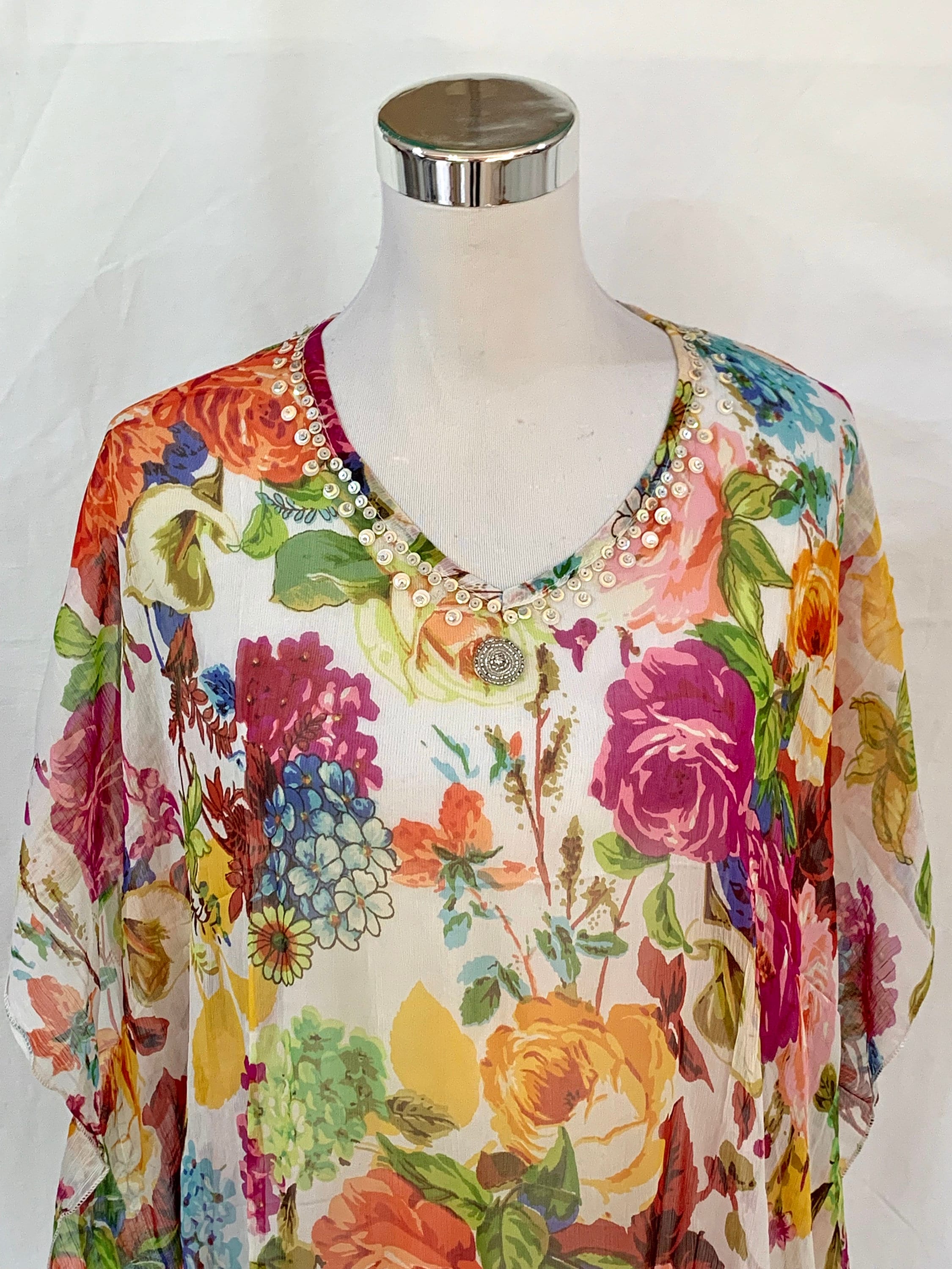 Chiffon kaftan tops clearance, Floral Kaftan top, Poly chiffon kaftan clearance
