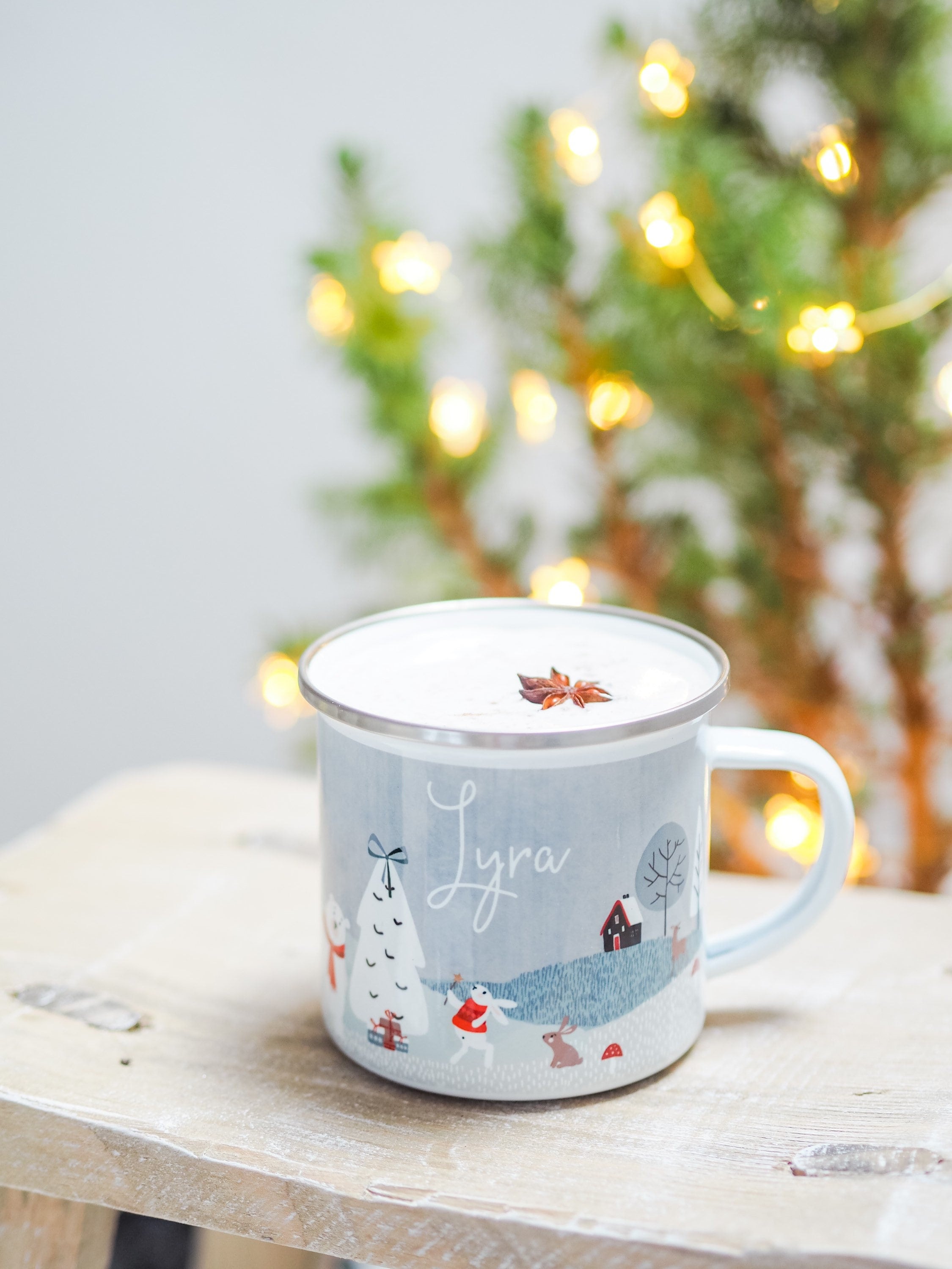 Christmas tin mug clearance, Personalised Little Cup Of Christmas Cheer Novelty Enamel Mug - White clearance
