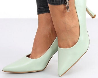 Mint green court shoes clearance, Green Patent Autumn Winter Summer Work clearance