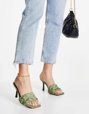 Olive mules clearance, ASOS Design Hove Woven Heeled Mules in olive-Green clearance