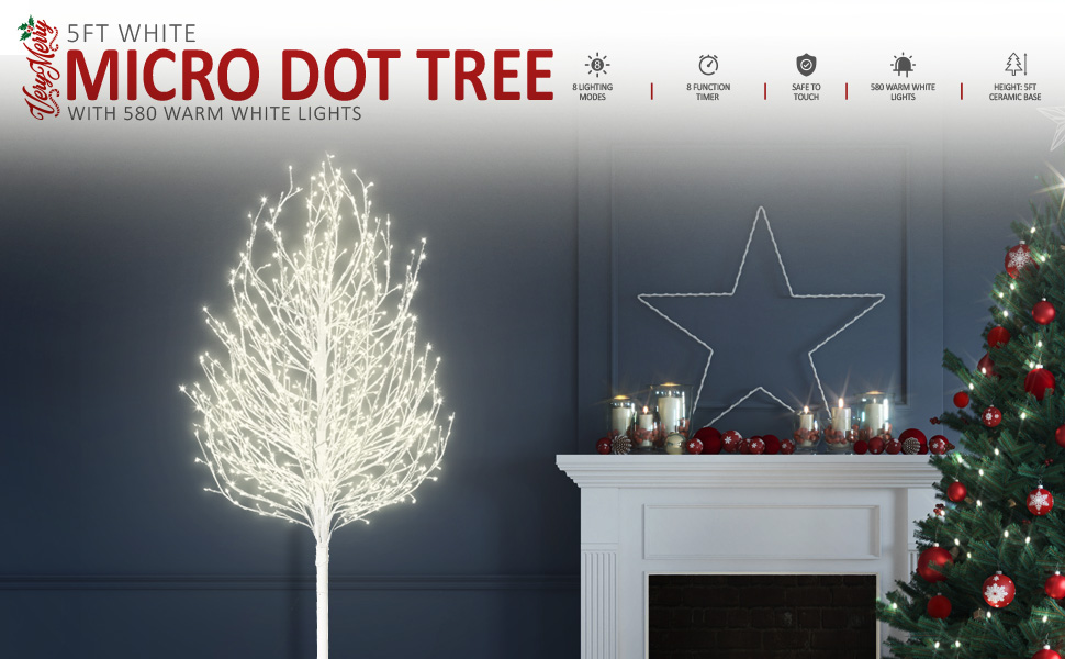 Christmas tree micro dot lights clearance, VeryMerry 5FT Micro Dot Birch Christmas Tree with 580 Warm White LED Lights, Auto-Off Timer and 8 Lighting Modes, Suitable for Indoor and Outdoor Use - White : Amazon.co.uk: Lighting clearance
