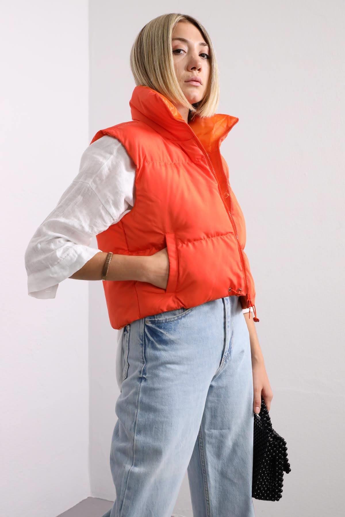 - Orange crop puffer vest