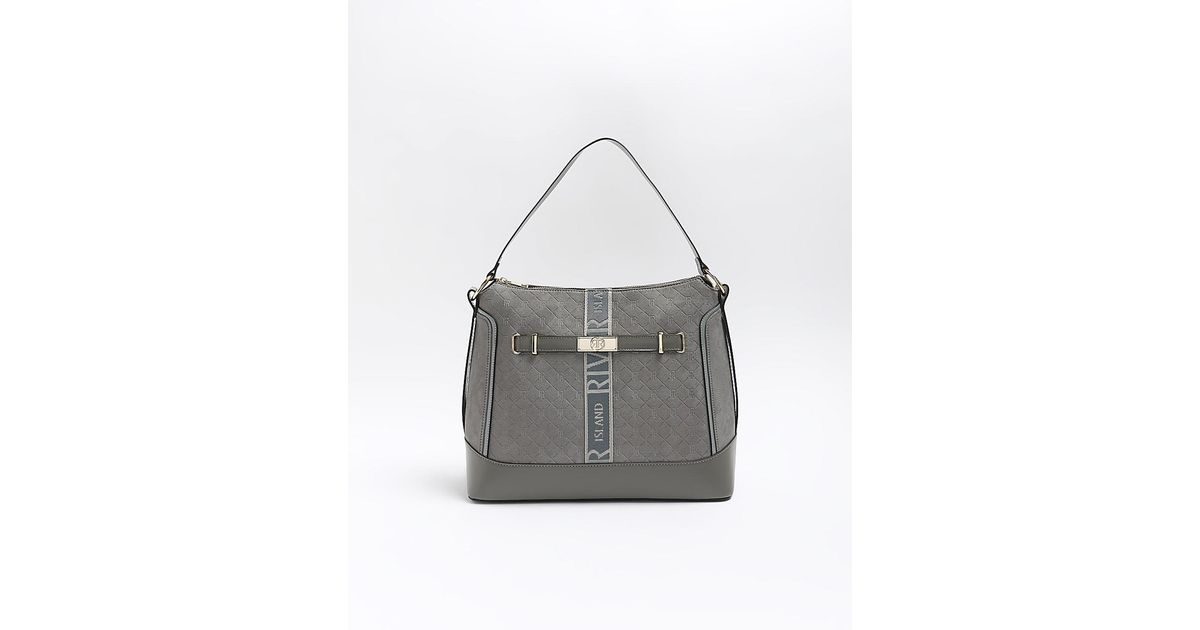River island hobo bag clearance, River Island Ri Monogram Webbing Tote Bag in Grey | Lyst Australia clearance