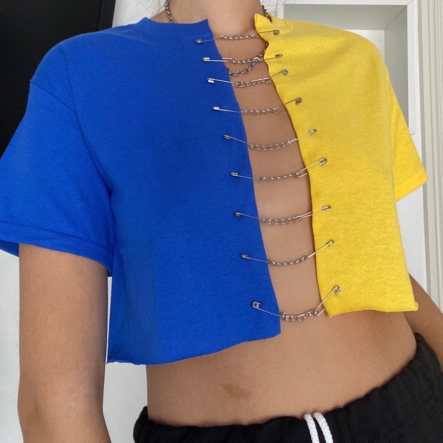 - Blue and yellow crop top clearance