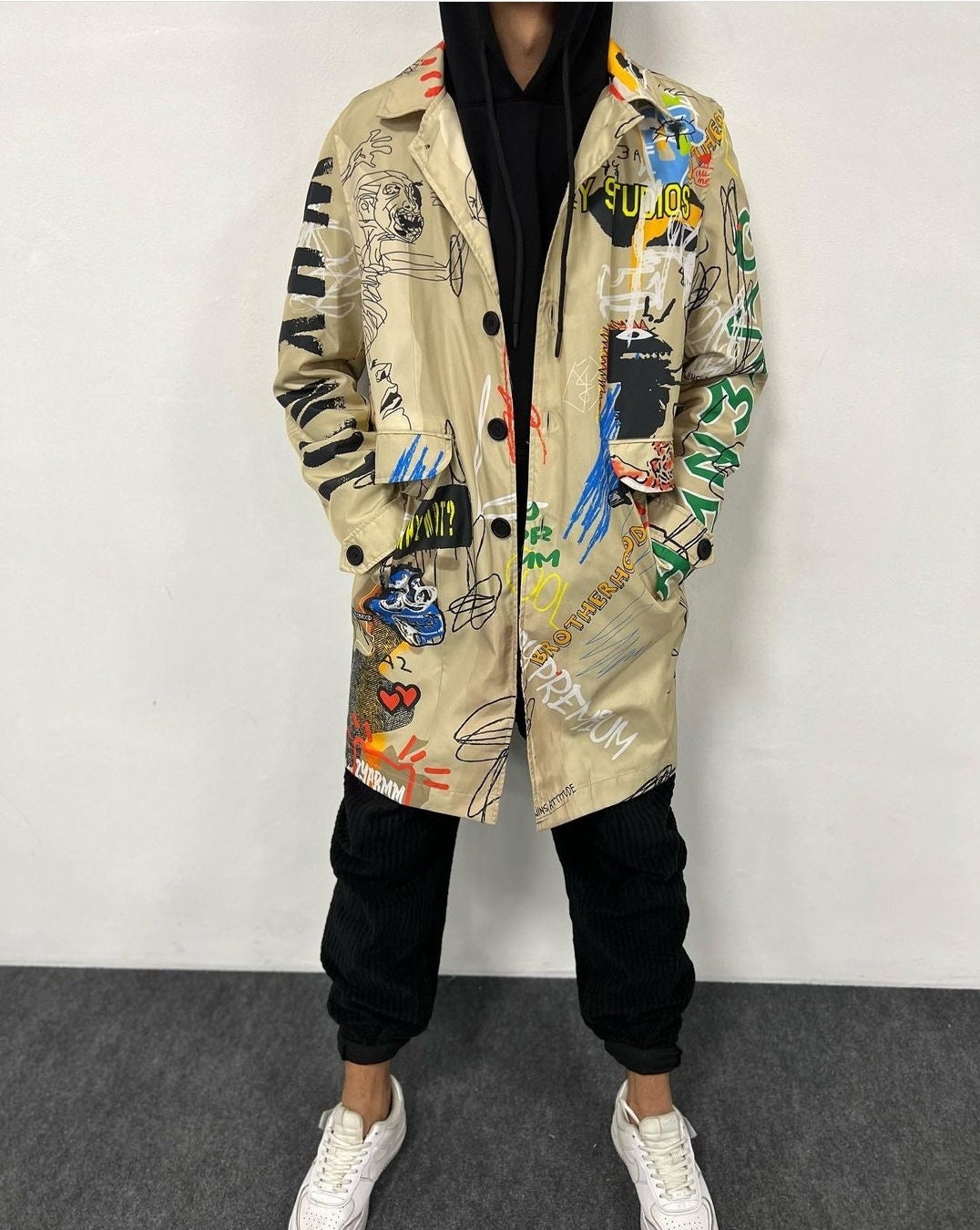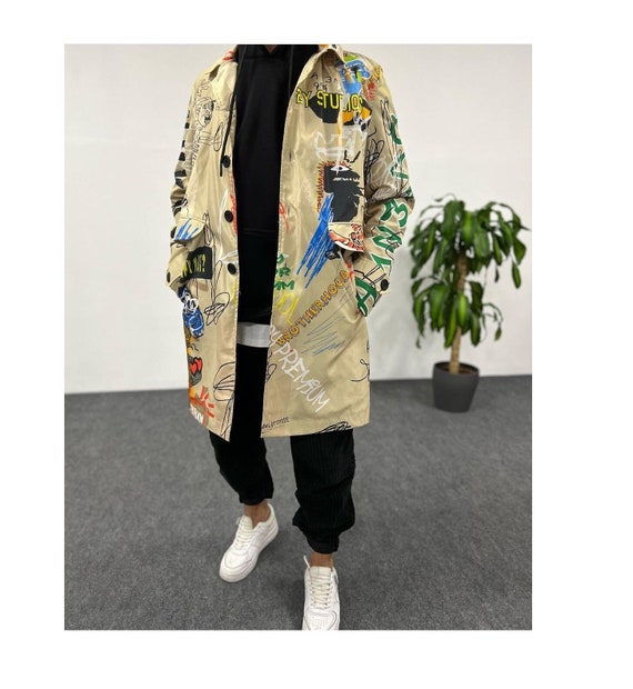 Graffiti trench coat mens clearance, Streetwear Graffiti Print Trench Coat Men Street Art Trench - Etsy France clearance
