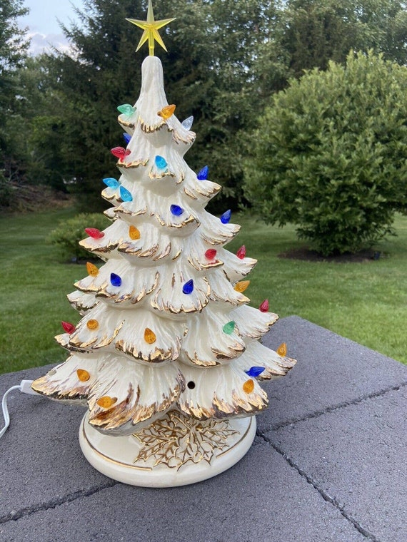 White ceramic christmas tree with gold trim clearance, Vintage Ceramic Christmas Tree White With Gold Tipped - Etsy | Vintage ceramic christmas tree, Ceramic christmas trees, Christmas tree clearance