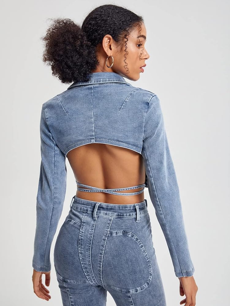 Trendy lapel neck pleated denim jacket clearance, FRAYED Jeans Women's Cropped Pleated Denim Jacket, Break Thru, X-Small at Amazon Women's Coats Shop clearance