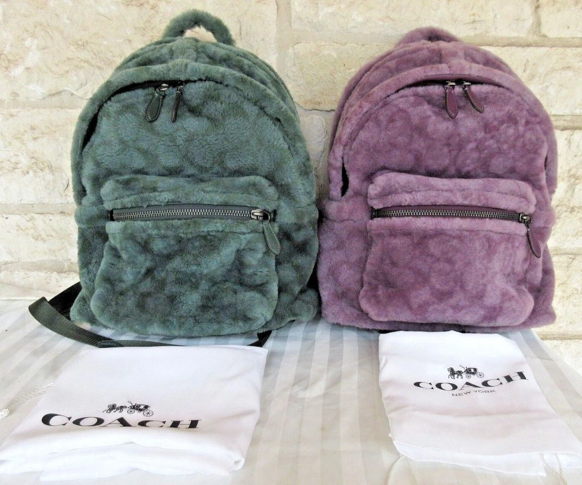 Coach fur backpack clearance, COACH Signature Shearling Charter Backpack, Pouch or SET Options: Green, Purple | eBay clearance
