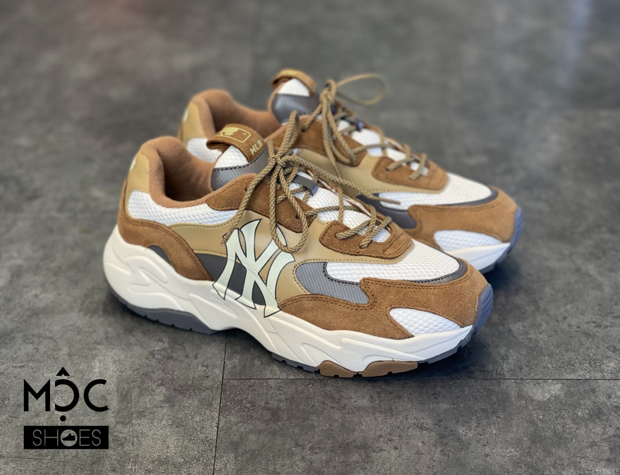 Brown chunky sneakers clearance, MLB CHUNKY LITE - New York màu Brown clearance