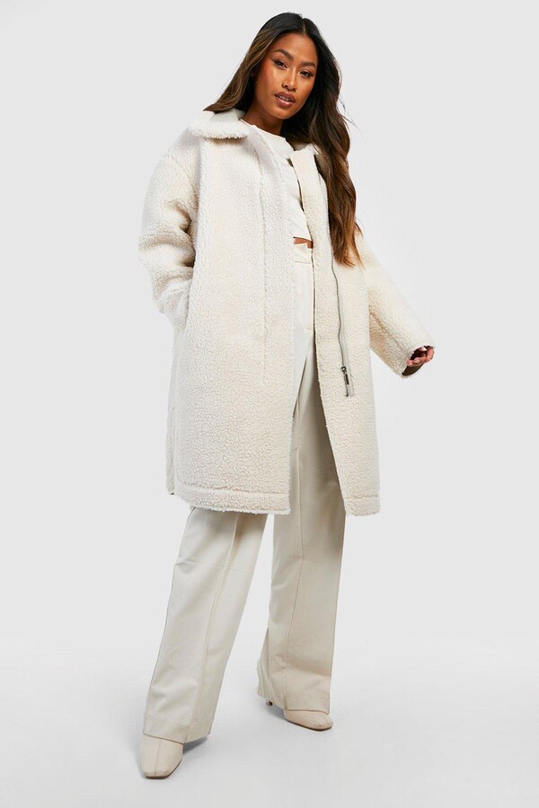 - Double breasted bonded faux fur teddy coat outlet