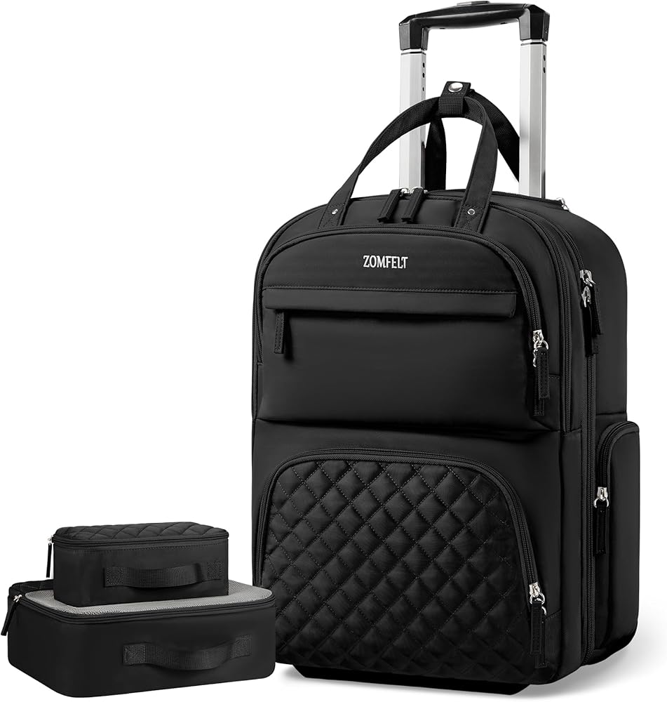 Work luggage on wheels clearance, Amazon.com | ZOMFELT Carry On Suitcase with Wheels, 17 Inch Water Resistant Rolling Suitcase for Travel, Underseat Multi-functional Carry On Suitcase, Portable Work Suitcase for Women Men, Black | Carry-Ons clearance
