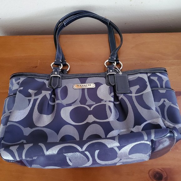 Blue and silver coach purse clearance