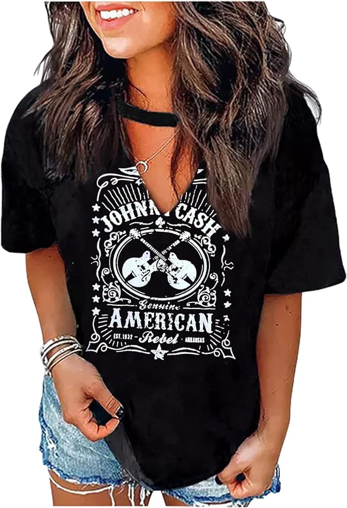 Cash t shirt women's clearance, Johnny Cash Short Sleeve Graphic clearance