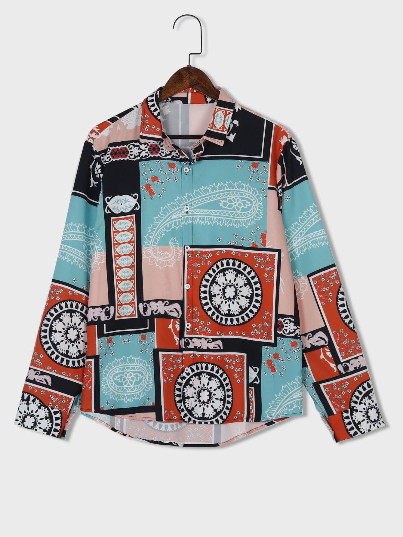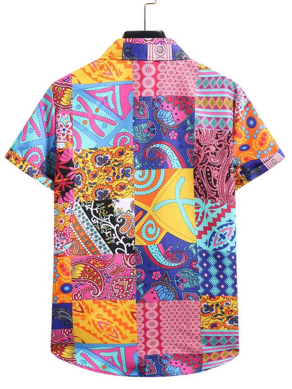 - Guys paisley patchwork button up shirt sale