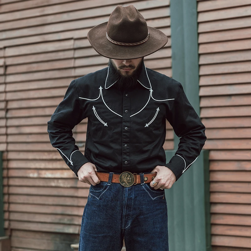Rockabilly western shirt clearance, Western Cowboy Shirt Black Embroidered clearance
