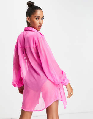 Pink beach shirt clearance, Bright Pink Long Sleeve Beach Shirt clearance