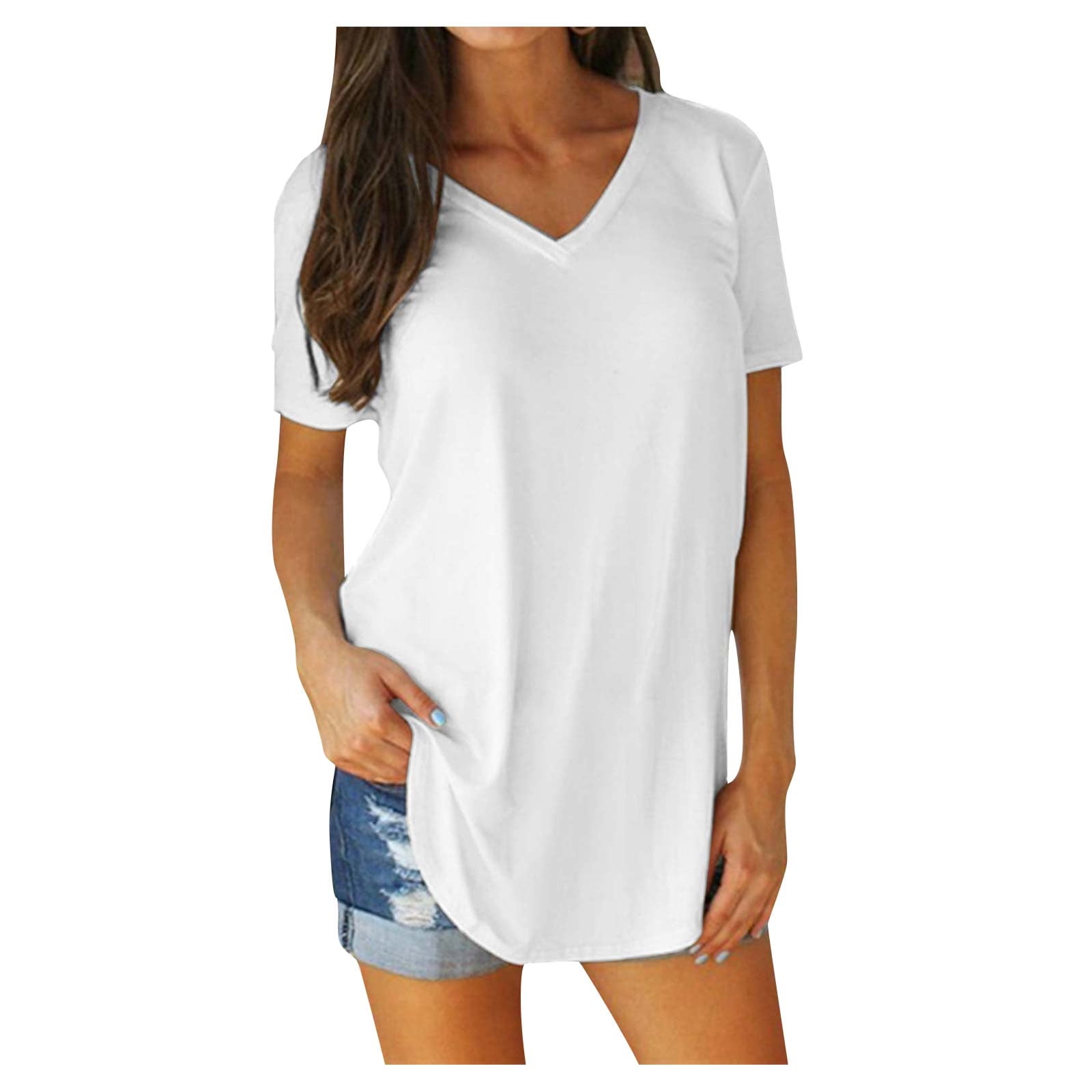 White v neck women's t shirt loose clearance, Geifa White Shirts for Women V Neck clearance