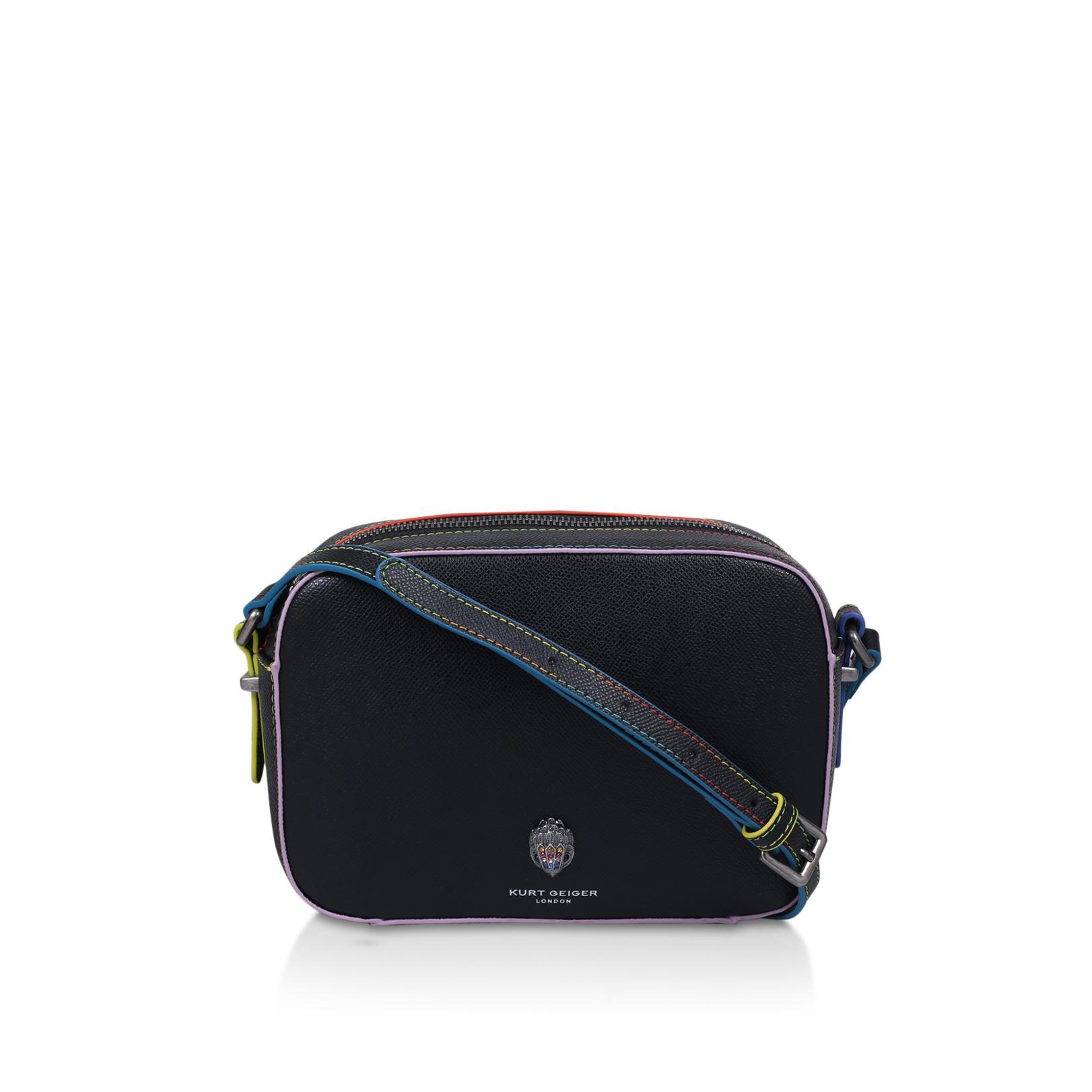 Kurt geiger black rainbow stitch bag clearance, RICHMOND CROSS BODY Black Leather Rainbow Stitch Camera Bag by KURT GEIGER LONDON clearance