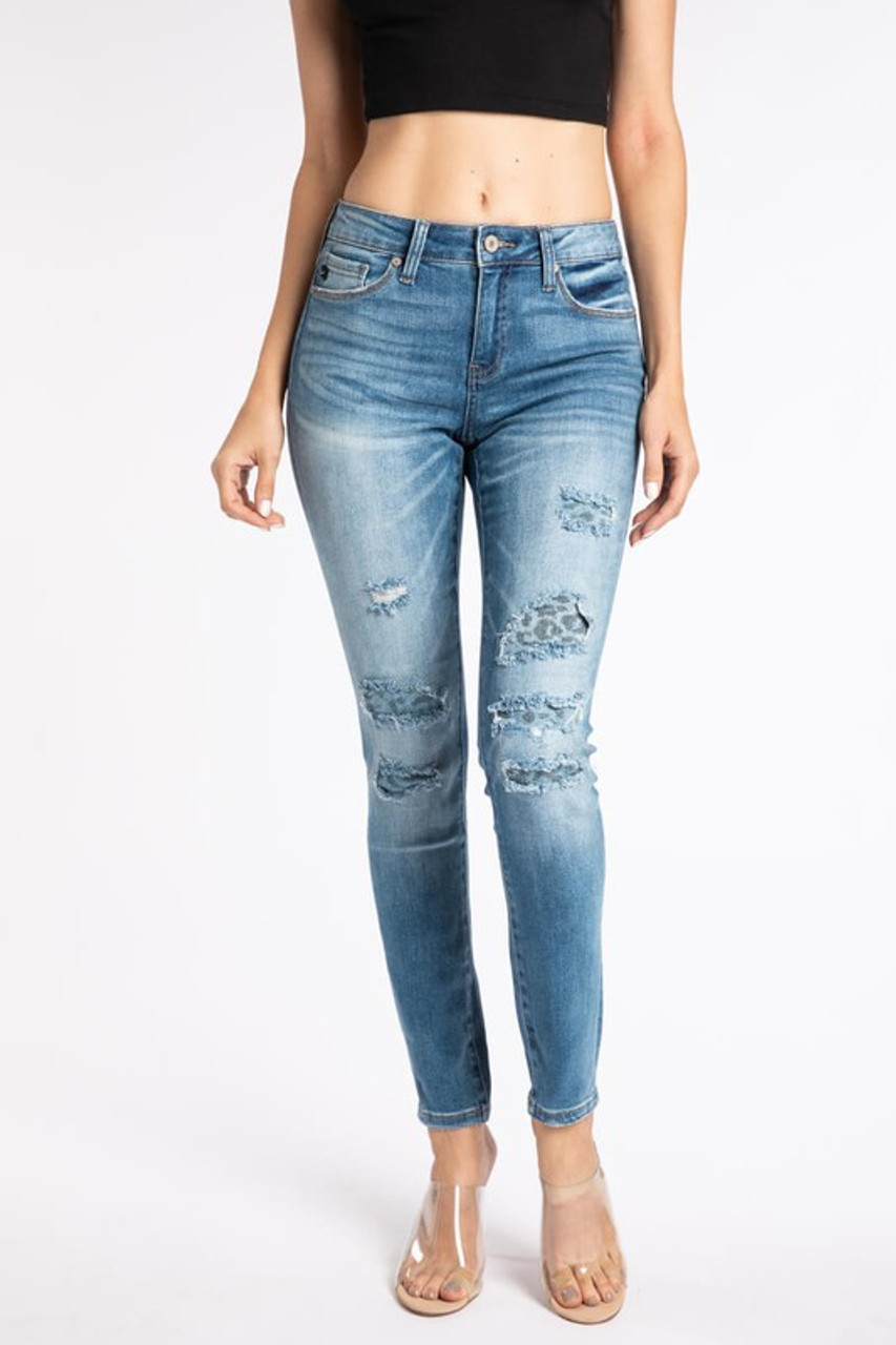 Kancan leopard patch jeans clearance, KanCan Leopard Patch Distressed Jeans clearance