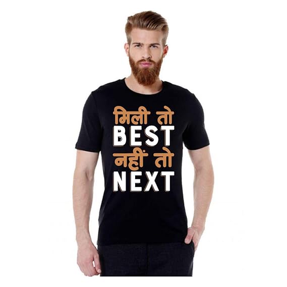 Mili to best nahi to next t shirt clearance, Bluehaaat Printed Men Round Neck Black clearance