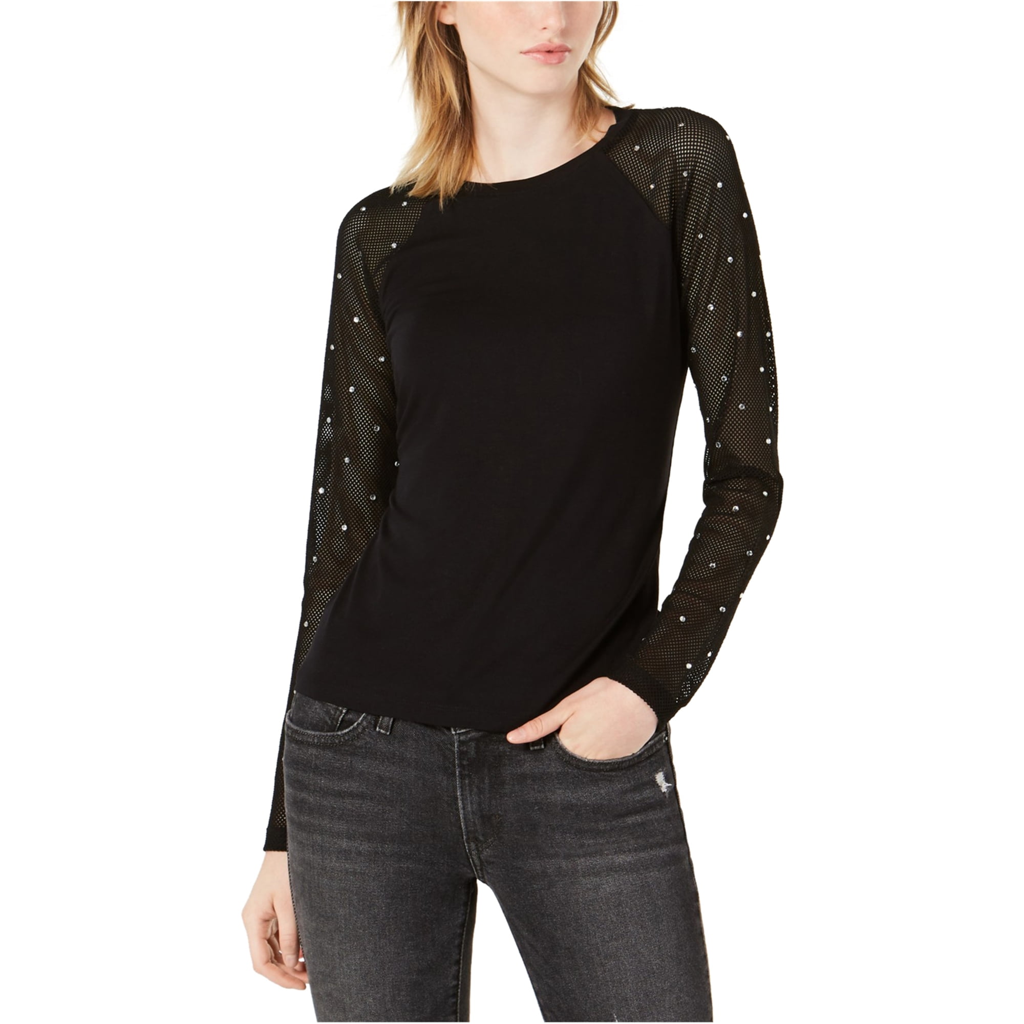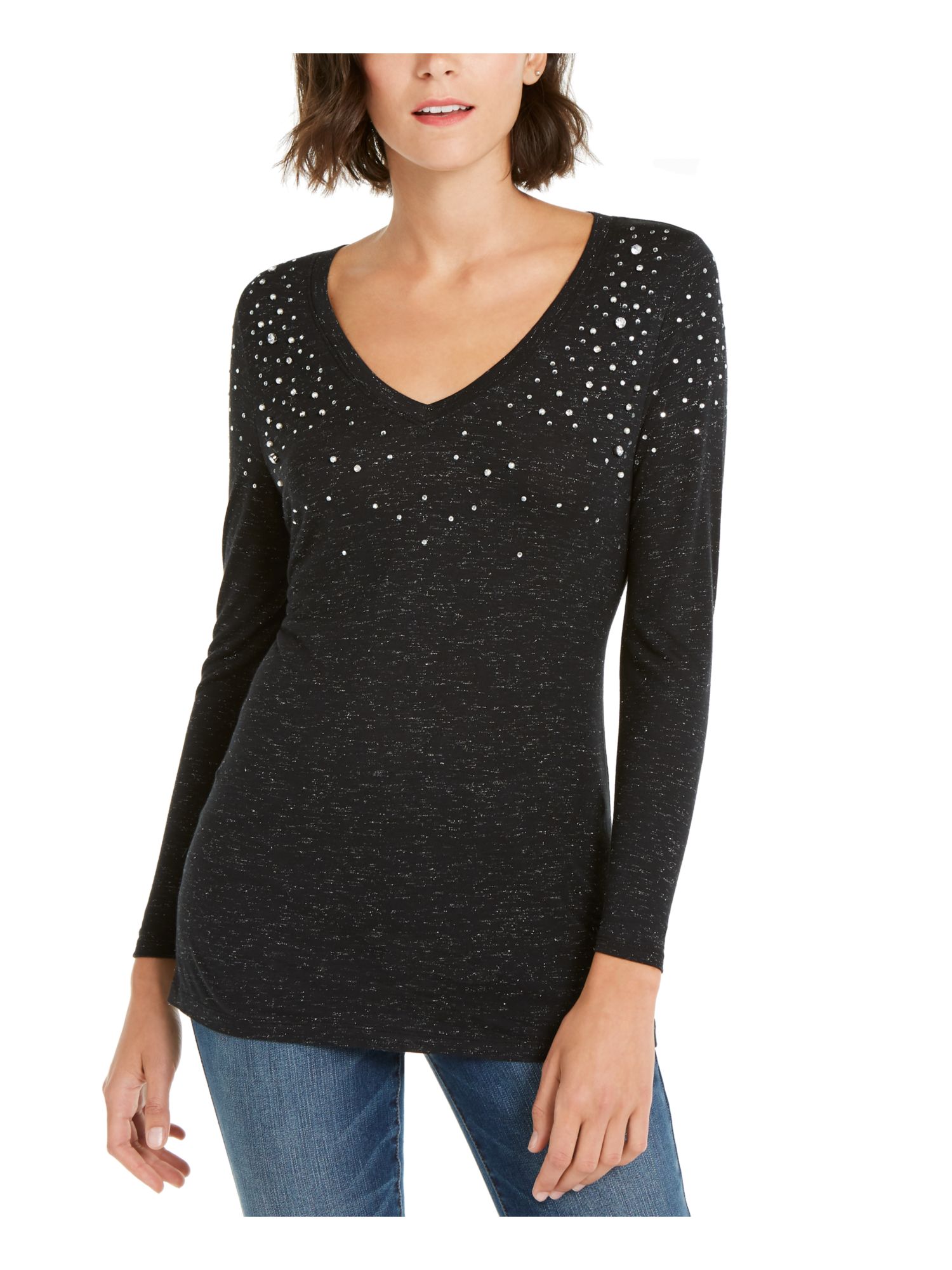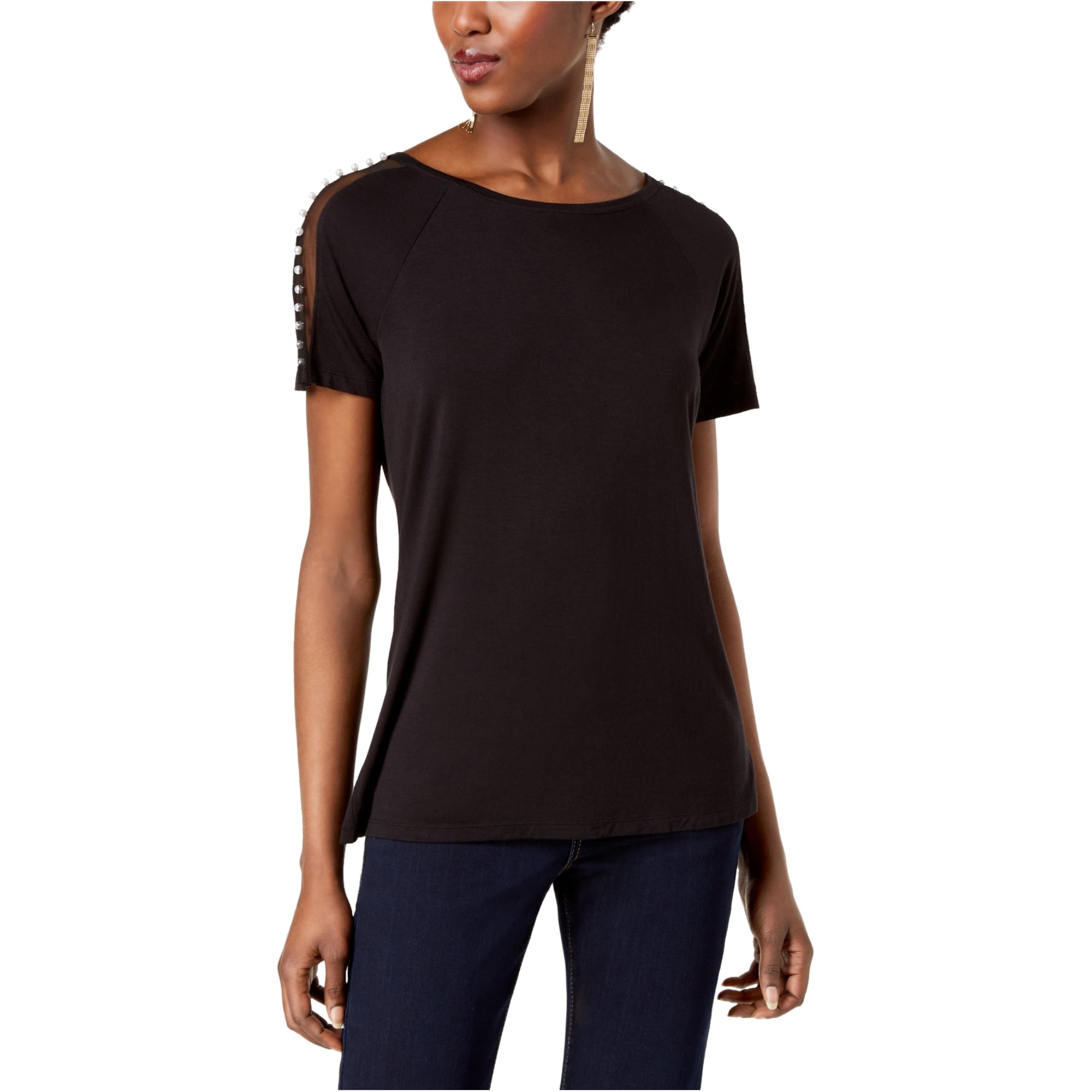 Black embellished t shirt clearance, INC Womens Black Embellished Metallic clearance