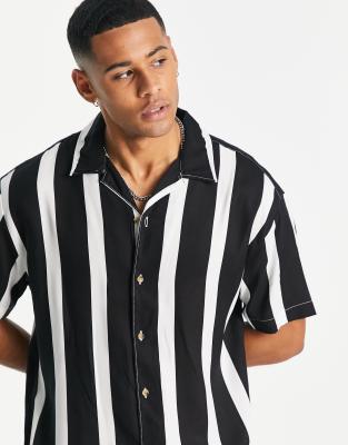 - White black striped shirt mens shop