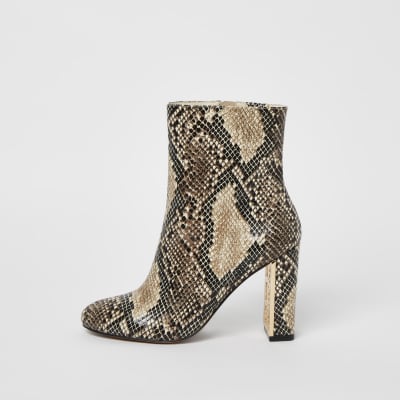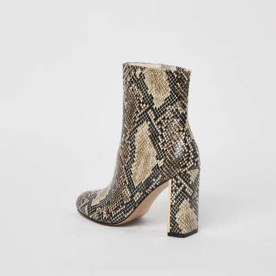 Wide fit snake print boots clearance, Beige wide fit snake print heeled ankle clearance