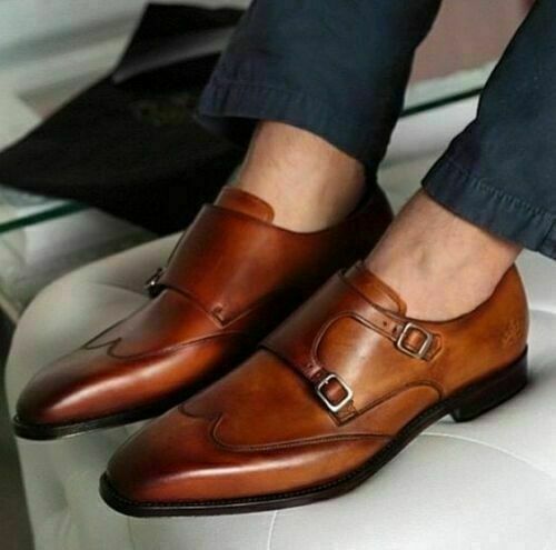 Oxford monk shoes clearance, Handmade Men's Genuine Tan Leather clearance