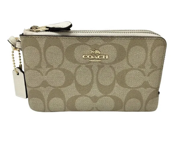 - Coach signature pvc double zip wristlet sale