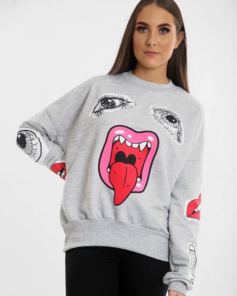 Kami monster print oversized sweatshirt jumper clearance