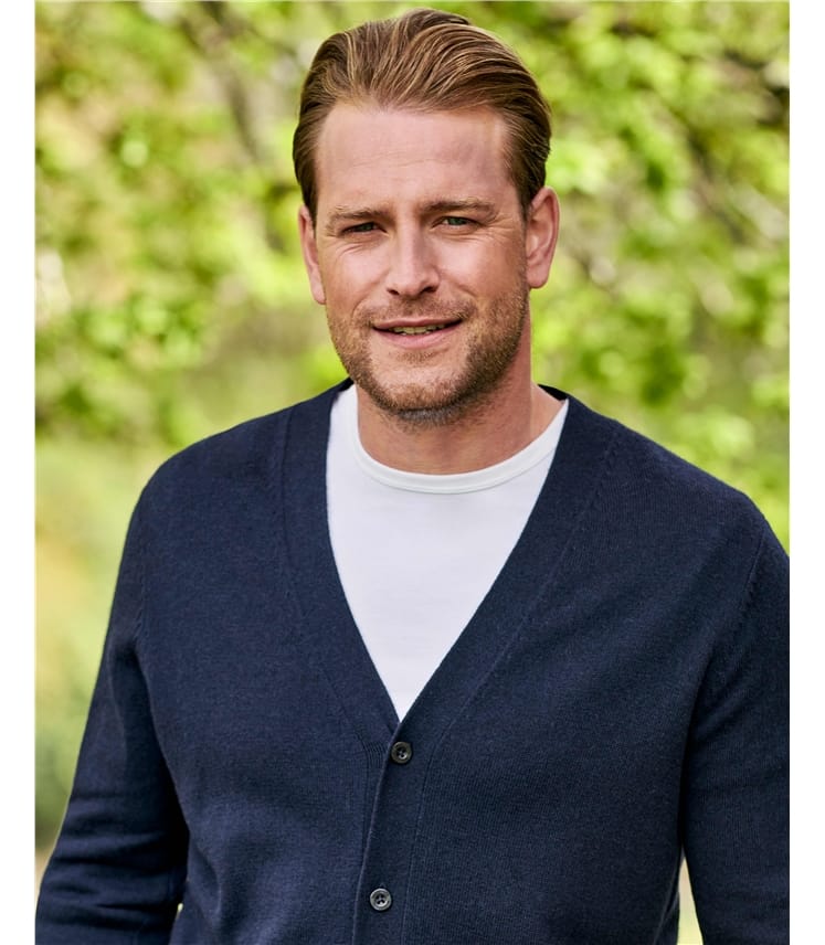 Navy blue v neck cardigan clearance, Navy | Silk u0026 Cotton V Neck Cardigan | WoolOvers AU clearance