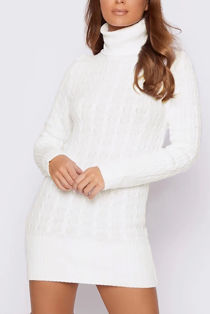 - Cream cable knit jumper dress