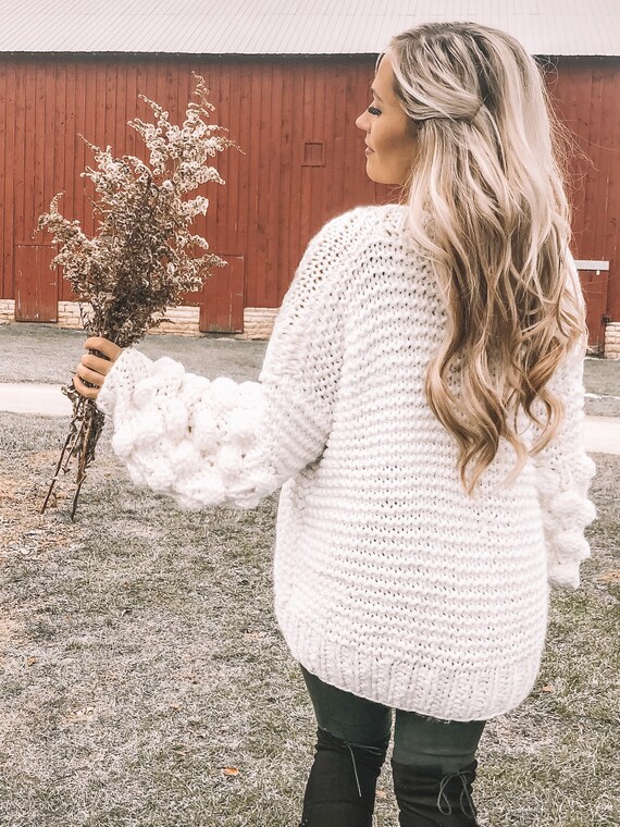 - White bubble sleeve sweater clearance
