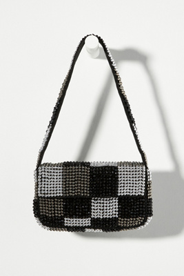 Metallic beaded shoulder bag clearance