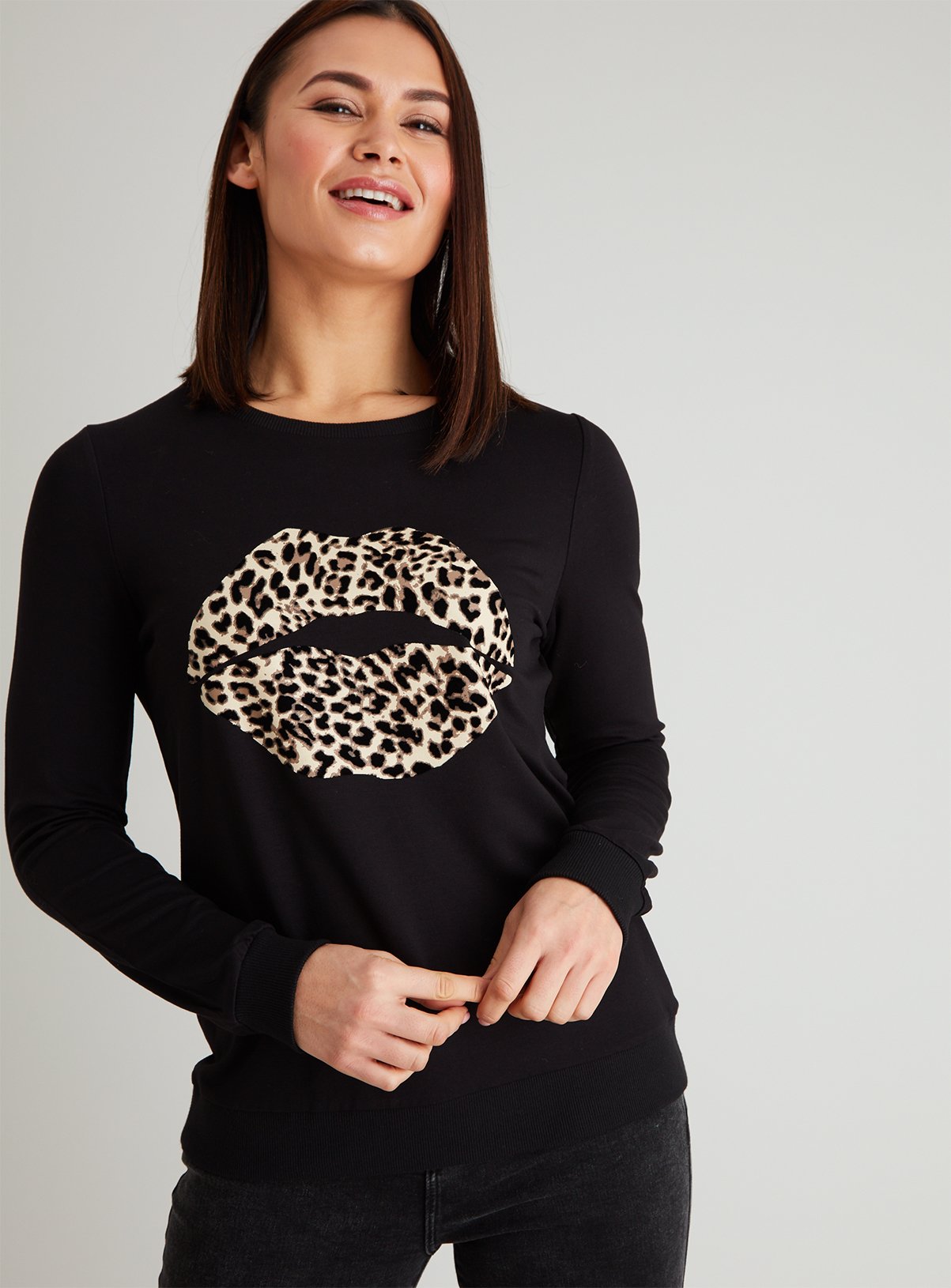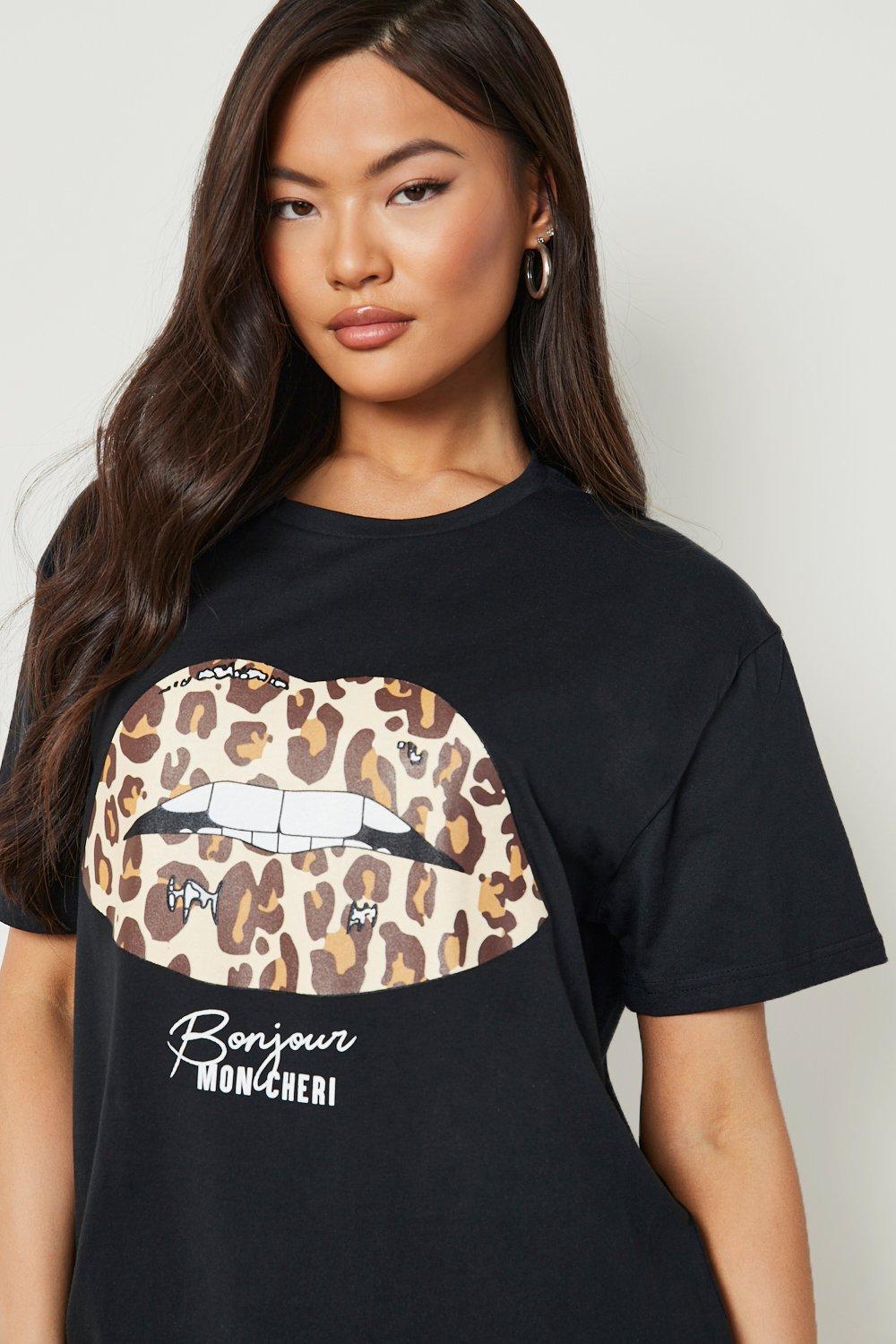Black shirt with leopard lips clearance
