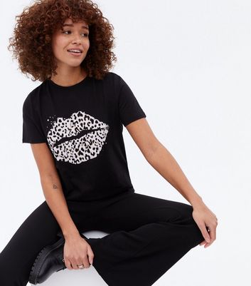 Product Name: Black shirt with leopard lips clearance