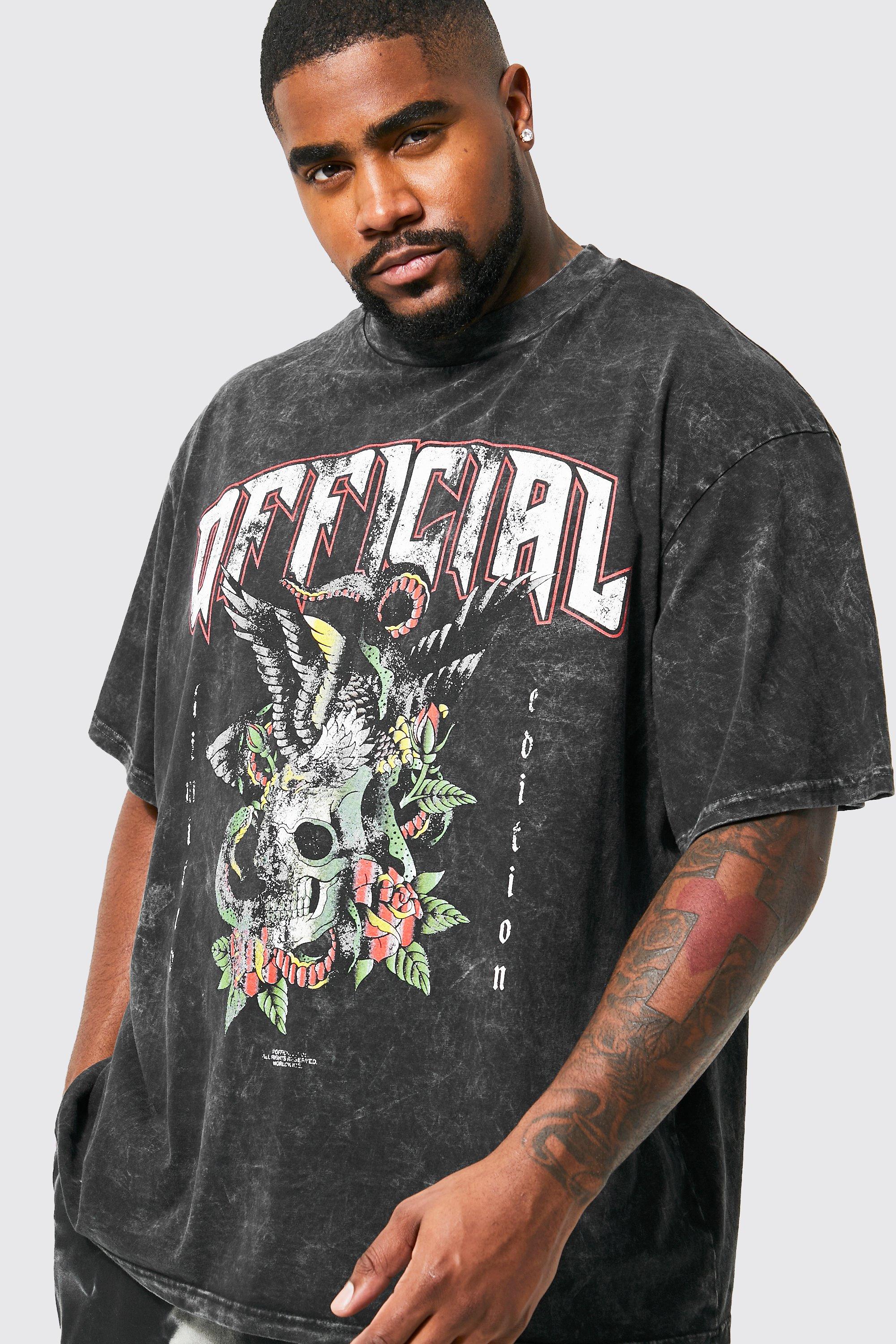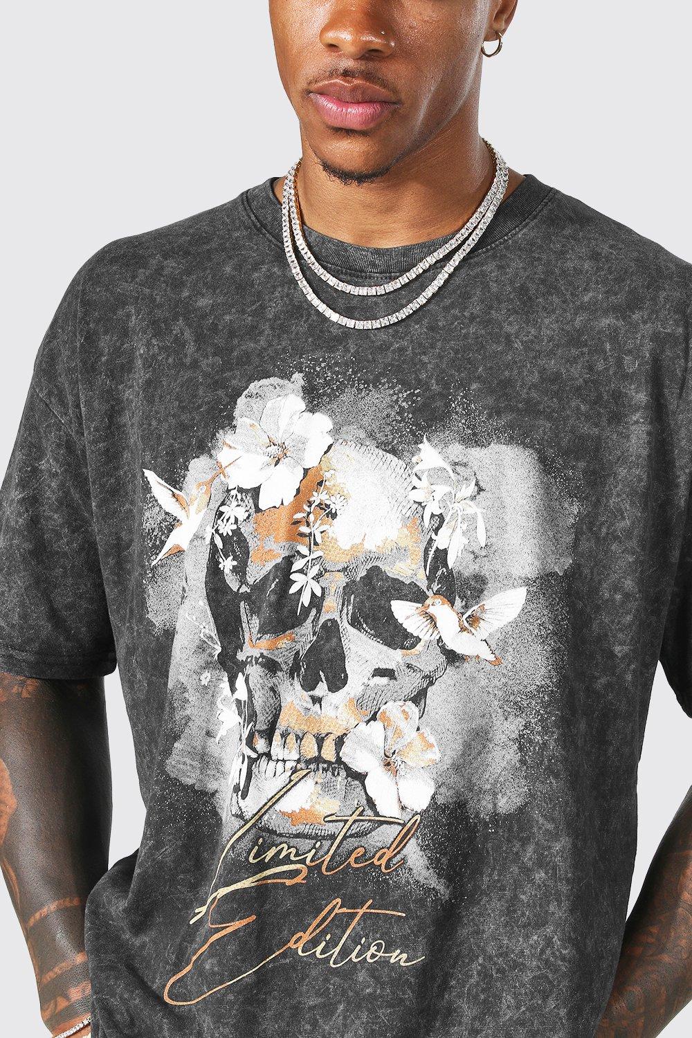 Charcoal graphic t shirt clearance, Men's Plus Acid Wash Skull Graphic T clearance