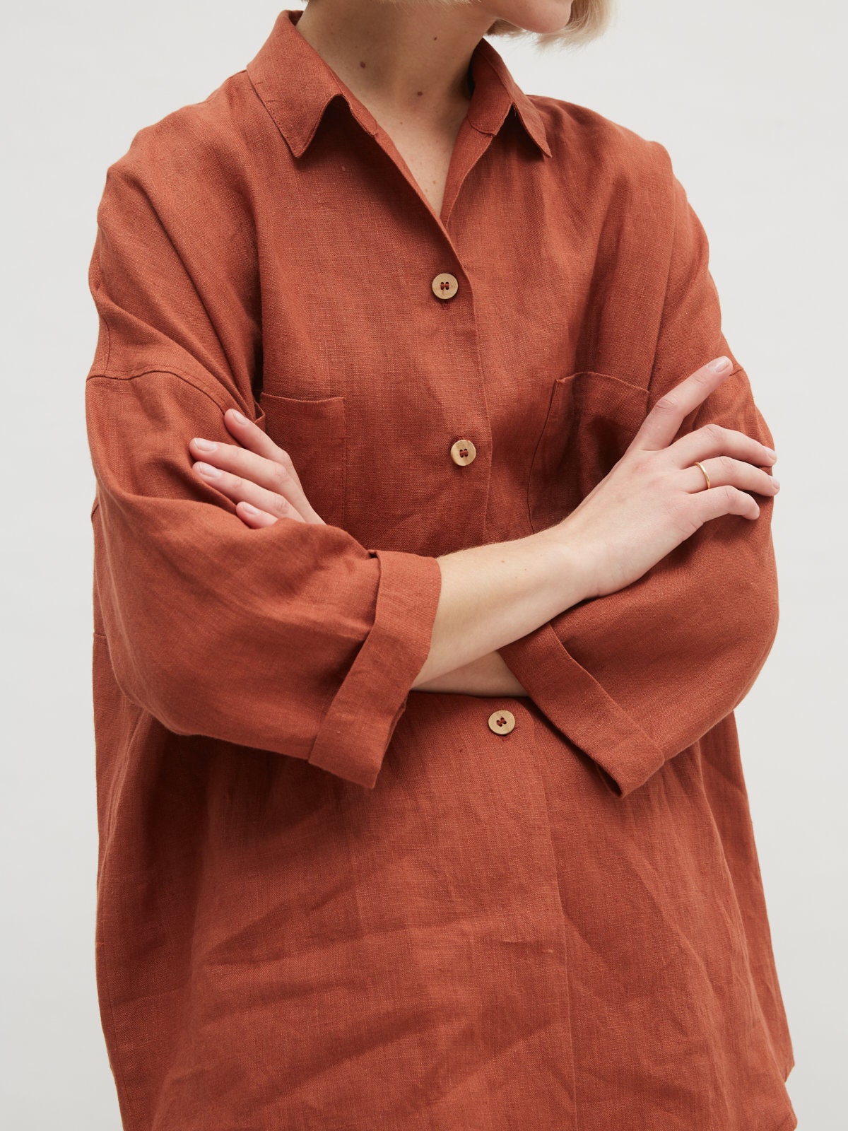 - Terracotta linen shirt shop