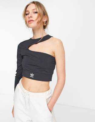 Adidas originals crop top black clearance, adidas Originals '80's Aerobic' cut out clearance