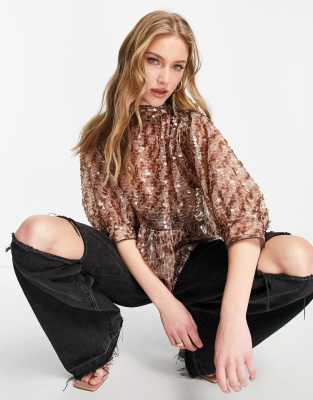 Sparkly peplum top clearance, KRISP Sheer Mesh Sleeve Black Sequin clearance