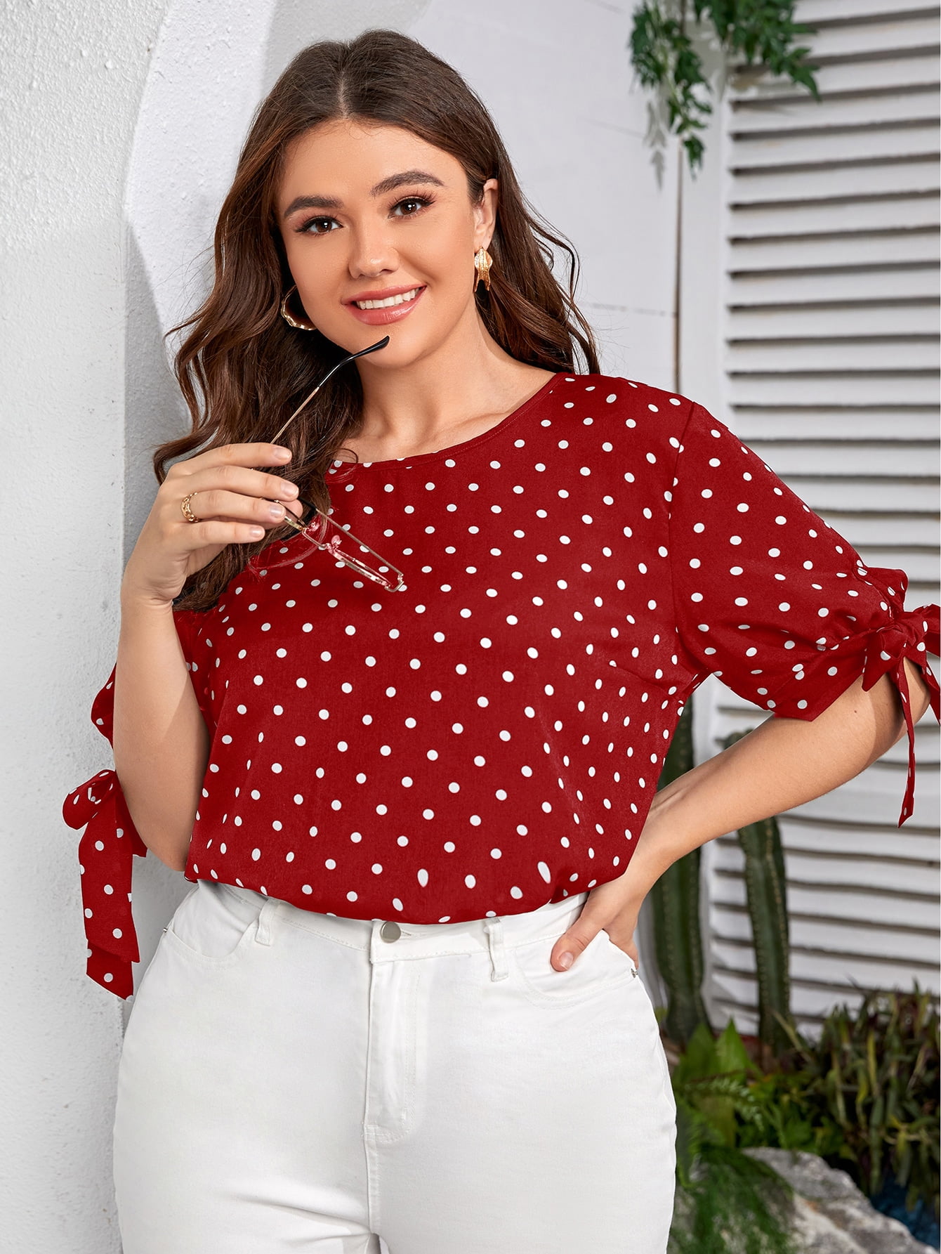 - Red and white polka dot top plus size