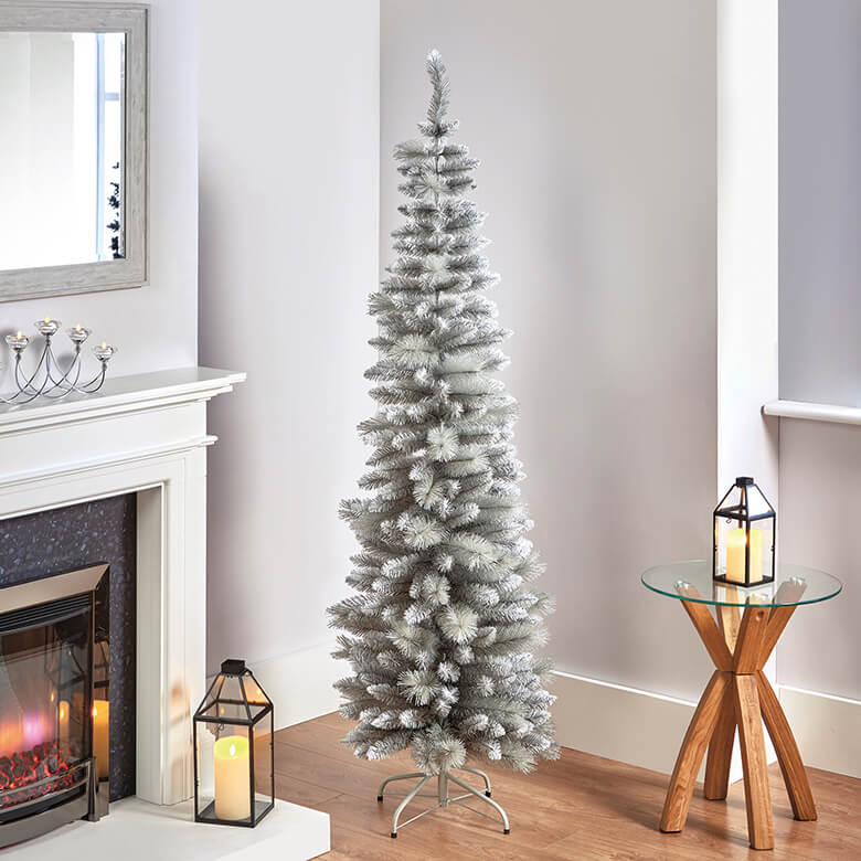 Silver pencil christmas tree clearance, 2M Artificial Silver Tipped Pencil Pine Xmas Tree With Glitter | Coopers Of Stortford clearance